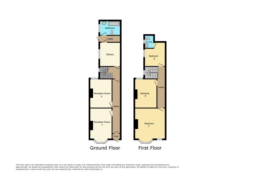 GROUND FLOOR Porch: Hallway: Reception room 1: 15 ft 8 in max x 9 ft 8 in max Reception room 2: 12 ft 10 in x 10 ft 2 in max Kitchen: 13 ft 10 in x 8 ft 1 in Bathroom: FIRST FLOOR Bedroom 1: 15 ft 10 in max x 13 ft 5 in max Bedroom 2: 12 ft 10 in x 10 ft 2 in max Bedroom 3 plus W.C: 12 ft 8 in max x 8 ft 2 in max