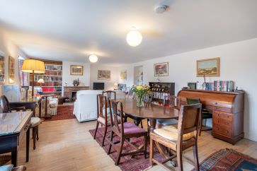 with open fire and traditional deep sill windows