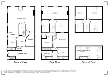 Ground Floor Vestibule Open plan Reception Room - 26'6 x 26' overall Kitchen 11' x 5' Rear Hall Bathroom 15' x 7'6 Study 9' x 8'6 First Floor Front Sitting Room 26' x 12'9 Bedroom 12'9 x 11'3 Bedroom 12'9 x 7'6 Shower Room with WC 6' x 4'6 Kitchen 13'6 x 8'9 max Access to roof garden off landing Second Floor Front Bedroom 13' x 11' Front Bedroom 15' x 13' Rear Bedroom 13' x 11'6 Bathroom 9'3 x 7'6