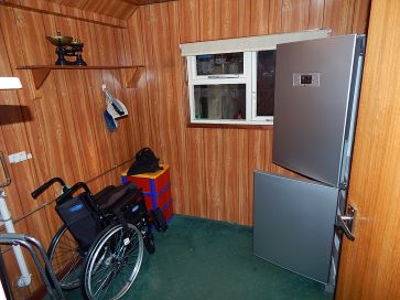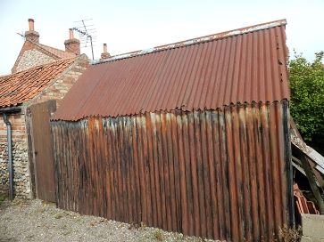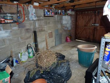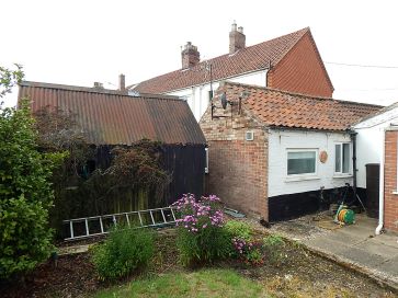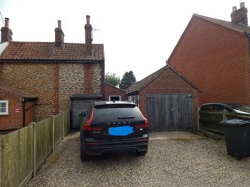 Garage with electricity, off road parking, wooden shed to front, tin shed to rear