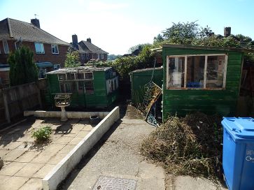 Front and rear garden, timber sheds.