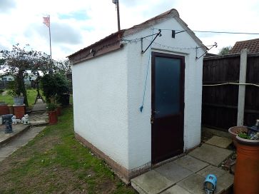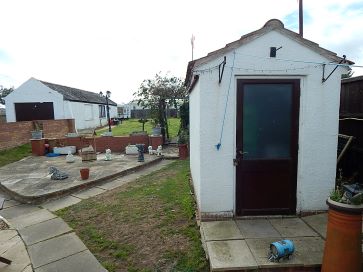 Detached garage, off road parking to side, large rear garden, front hardstanding, shed, green house