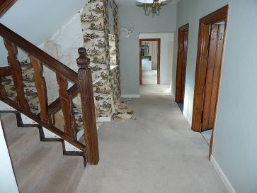 Large reception hall with open fire, hall, dining room, breakfast room, kitchen with servants bells, pantry, utility, wc, laundry room,