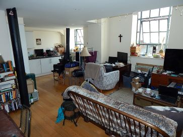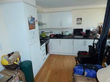 Large open plan kitchen / sitting room, stairs to upper level with bedroom, bathroom and walk in cupboard