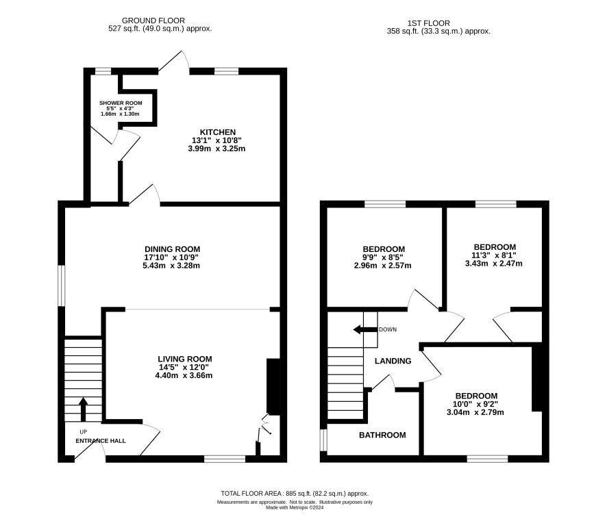 Hall, living room, dining room, kitchen, shower room