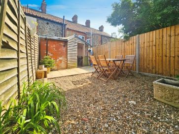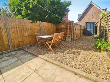 Rear enclosed low maintenance garden, with patio, shingle areas, storage shed and side access gate leading to Back Lane.