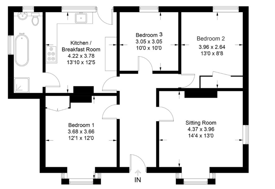 The sitting room is a charming dual-aspect space, boasting a bay window to the front and an additional side window. It also features laminate-style flooring and retains its original open-grate tiled fireplace.