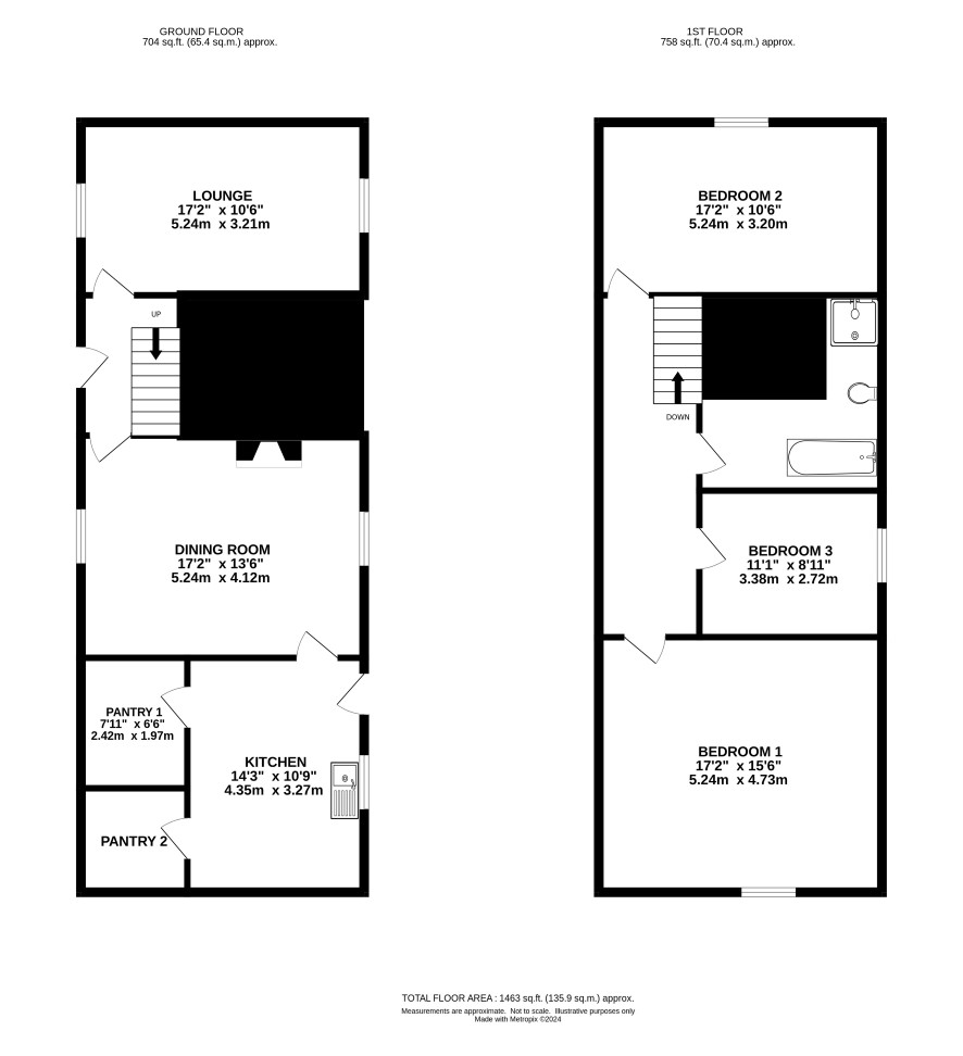 Hall, kitchen lounge, dining room and two pantry rooms.