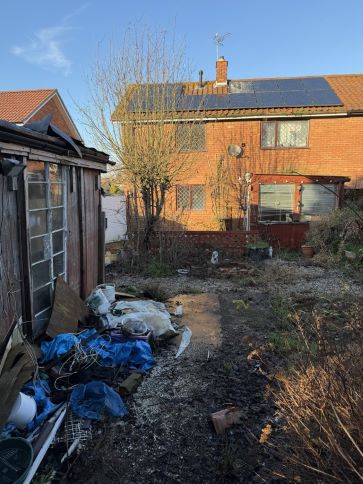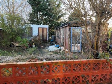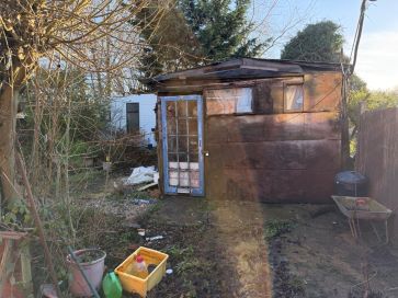 Front and rear garden in need of attention, off road parking, two timber outbuildings to rear
