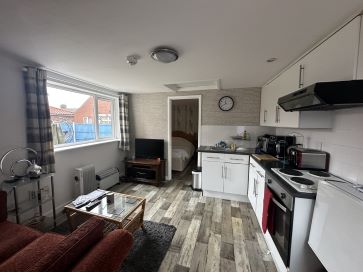 Detached annexe is situated behind timber gates and offers sitting room with kitchenette, bedroom and ensuite
