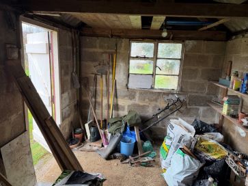 Front and rear garden, off road parking, detached garage, timber shed