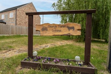 Driveway to side of the property with large willow tree to front garden. The garden stretches to the west and rear of the property and is currently laid to lawn.