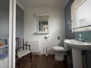 Detached annexe is situated behind timber gates and offers sitting room with kitchenette, bedroom and ensuite