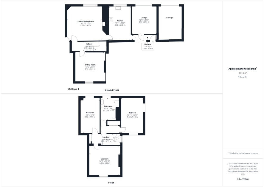 Cottage 1 Accommodation (see floor plans for dimensions).