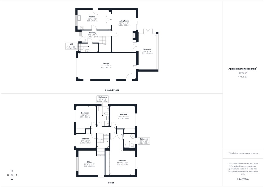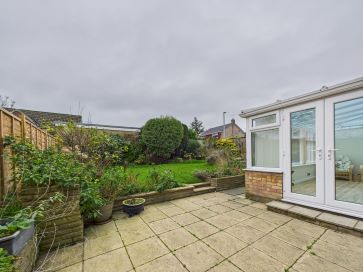 Entrance Hallway - 5'8" x 14'4" (1.73m x 4.37m) Radiator. Staircase to first floor. Doors leading to: WC - 3'10" x 8'8" (1.17m x 2.66m) Low flush WC, sink with pedestal and mixer tap. Plumbing for appliance. Kitchen - 9'5" x 16'2" (2.89m x 4.95m) Range of shaker style wall and base units. Eye-level electric oven and grill. Electric hob. Sink with mixer tap and right hand drainer. Side door to outside. Radiator. Double doors leading to: Living Room - 19'9" x 11'9" (6.03m x 3.60m) Radiator. Feature fireplace. Patio doors to outside. Door leading to: Sunroom - 17'1" x 8'9" (5.21m x 2.69m) Two radiators. French doors to outside. Door leading to: Garage - 12'2" x 27'7" (3.72m x 8.42m) Up and over garage door. Side door to outside.