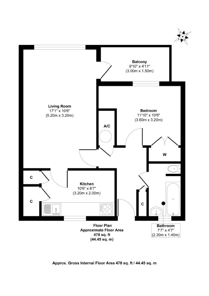 A Vacant First Floor One Bedroom Flat