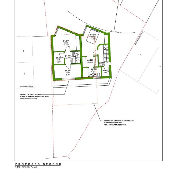 House 1 Kitchen/Reception Study Separate WC First Floor Bedroom/Reception Bedroom Bathroom Second Floor Two Bedrooms Bathroom G.I.A 102 sq m / 1,097 sq ft House 2 Large Kitchen/Reception First Floor Large Bedroom & En-suite Second Floor Large Bedroom & En-suite G.I.A 102 sq m / 1,097 sq ft