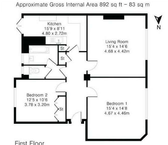 Ground Floor Reception Room Kitchen Two Bedrooms Bathroom Separate WC GIA approx. 83 sq. m (893 sq. ft)