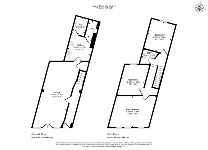 Ground Floor Retail Unit Kitchen Utility Room WC First Floor Three Rooms WC GIA Approximately: 105 sq m (1,128 sq ft)