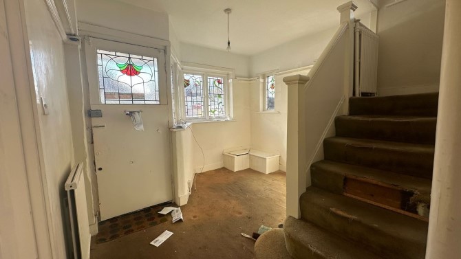 A Vacant Three Bedroom Detached House Offered with Planning Permission for a Roof Extension and A Single Story Rear Extension.