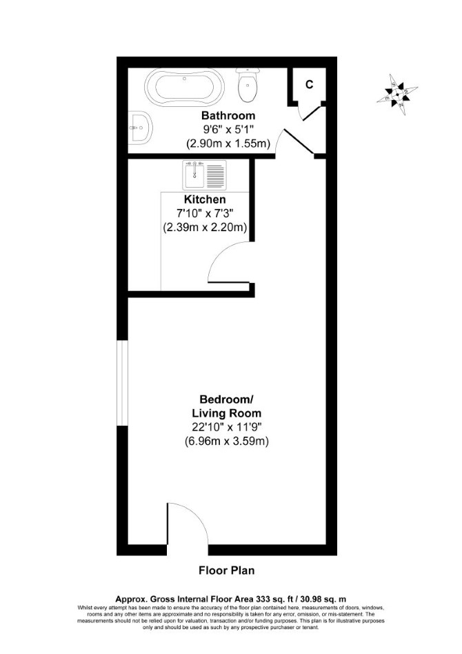 A Vacant First Floor Studio Flat. ERV based on the Local Housing Allowance (LHA) Rate is £8,372 per annum (Source: LHA Website, Subject to Condition, their Terms and Current Requirements).