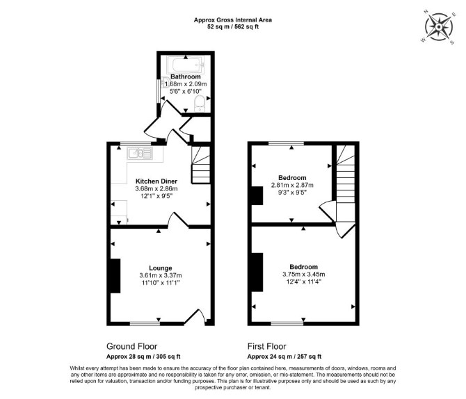 The property comprises a two bedroom mid terrace house arranged over ground and first floors.