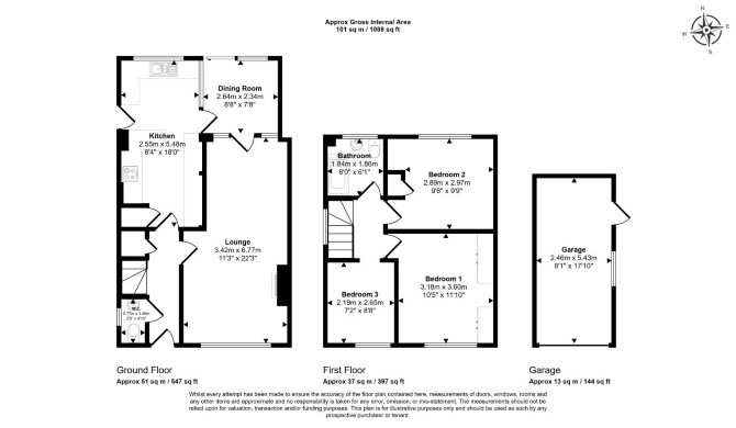 Ground Floor Reception Room Dining Room Kitchen WC First Floor Three Bedrooms Bathroom