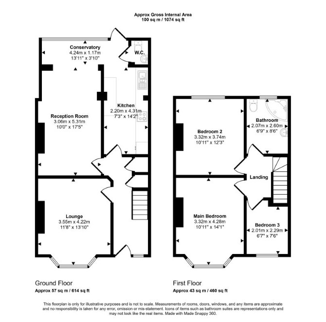 Ground Floor Two Reception Rooms Kitchen WC First Floor Three Bedrooms Bathroom