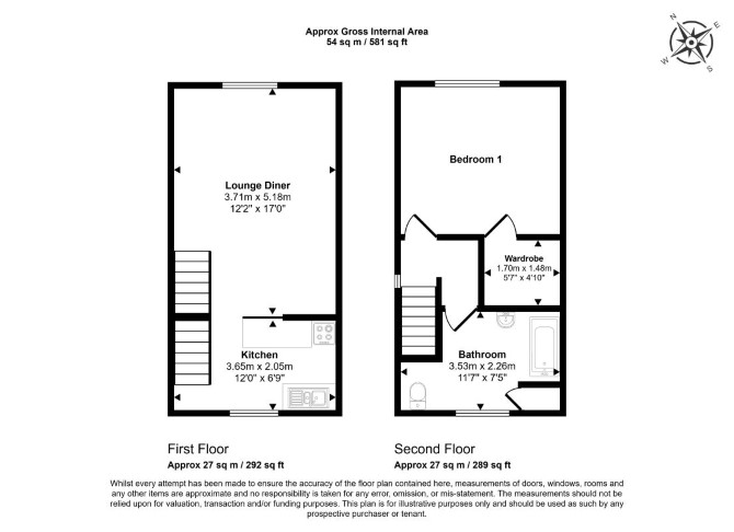 First Floor Reception Room with Open-Plan Kitchen Second Floor Bedroom Bathroom