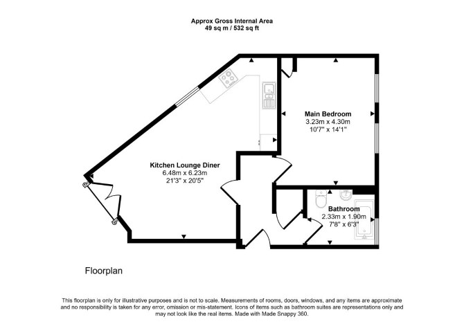 First Floor Open Plan Reception/Kitchen Bedroom Bathroom