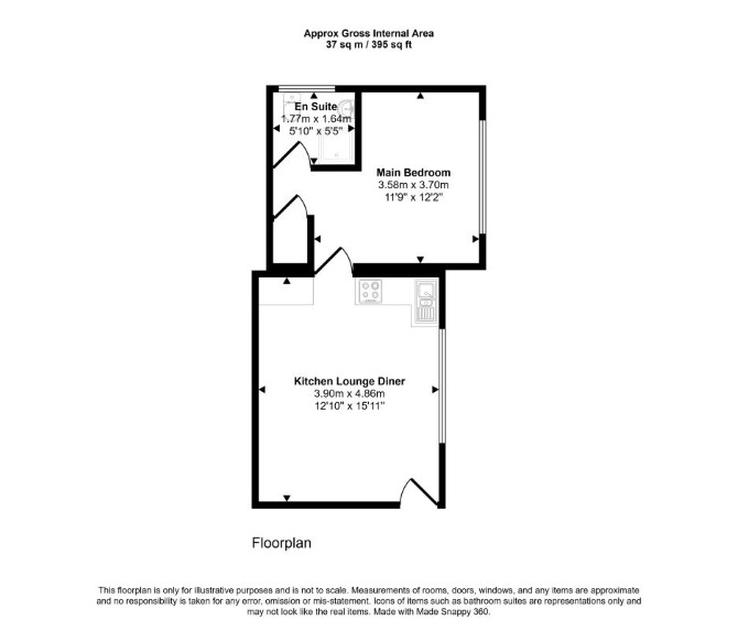 Ground Floor Reception Room with Open-Plan Kitchen Bedroom Bathroom