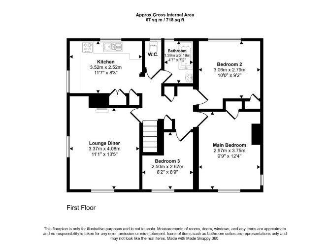 The property comprises a first floor three bedroom flat situated within an end of terrace building arranged over ground and first floors.