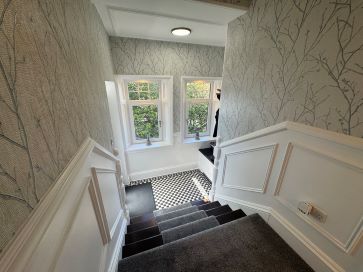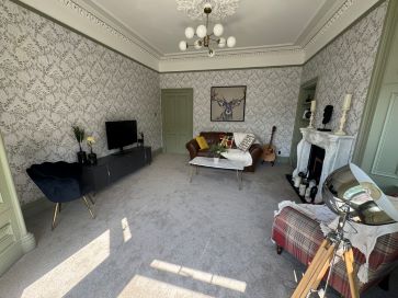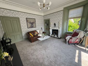 Beautifully presented upper apartment on a prominent corner site on May Street in Largs in close proximity to the shorefront. This stunning property is well located for access to Largs town centre and amenities, as well as being located a short walk to the waterside at the bottom of May Street. The flat itself provides excellent accommodation and is finished to a high standard. A staircase leads to the main door entrance, opening to a welcoming reception hall which accesses each of the main rooms. The lounge is a beautiful room with a large bay window, side window, fireplace and detailed cornicing on the ceiling. The kitchen is dining sized, and fitted with units, appliances and a breakfast bar. The bathroom features a luxurious suite with a freestanding bath and separate shower cabin. Both bedrooms are well proportioned. A hatch in the kitchen with a pull down ladder leads to a large floored loft. There is a monoblock driveway for off street parking, and a garden area to the rear which incorporates a charming stone outhouse with versatile usage, featuring a wood burning stove. In line with our duty to provide accurate information, we wish to disclose that the property has been subject to a dispute with a neighbouring owner. The matter relates to shared repairs. Interested parties should satisfy themselves on this point prior to bidding and are advised to seek independent legal advice if required. Council Tax: D. EPC Rating: D