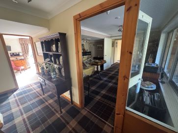 An exciting opportunity to acquire this substantial former hotel with planning already passed to convert to residential use, set within a private rural location just south of Oban. Foxholes comprises a former nine-bedroom hotel, each bedroom benefitting from en-suite facilities, together with a dining room, lounge/bar, commercial kitchen, pantry and laundry room. In addition, the property includes a spacious four-bedroom apartment with office, sitting room, bathroom and en-suite shower room, providing flexible owner’s accommodation or further letting potential subject to consents. Adjacent to the main building is a timber-clad lodge featuring a double garage at ground level and well-presented studio accommodation above, including an open-plan kitchen, sitting and dining area, double bedroom and shower room. A further one-bedroom chalet is positioned near the lower boundary of the garden and remains incomplete internally, offering additional development scope. The property is still mixed use so rates and council tax apply. The application has been passed for a change of use from bed & breakfast/hotel to dwelling house, planning reference 23/01450/PP. The property is set within mature, well-established gardens with trees and herbaceous borders, and is accessed via a short private driveway leading from a privately owned tarmac road. WHAT3WORDS ///fend.steady.mascot