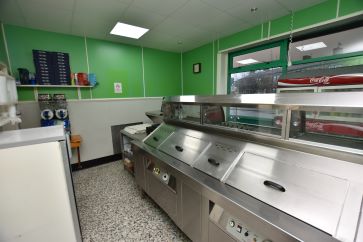 Fish and chip shop, preparation area, kitchen and WC
